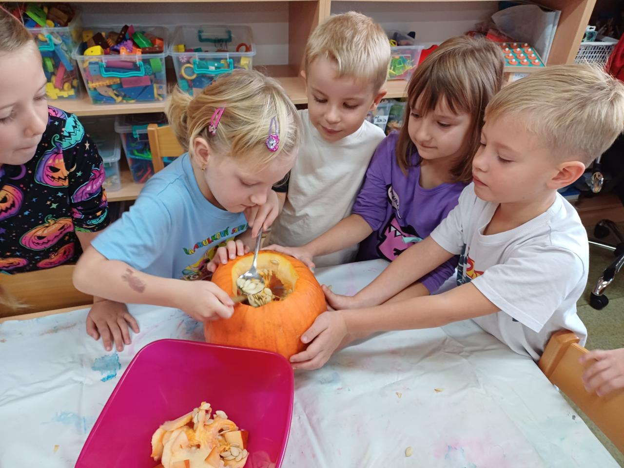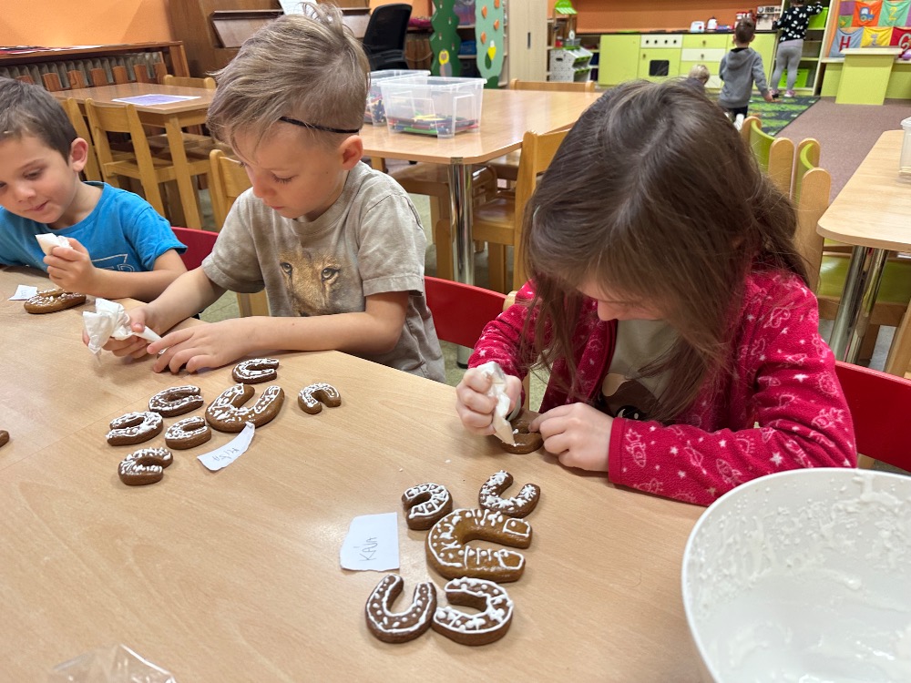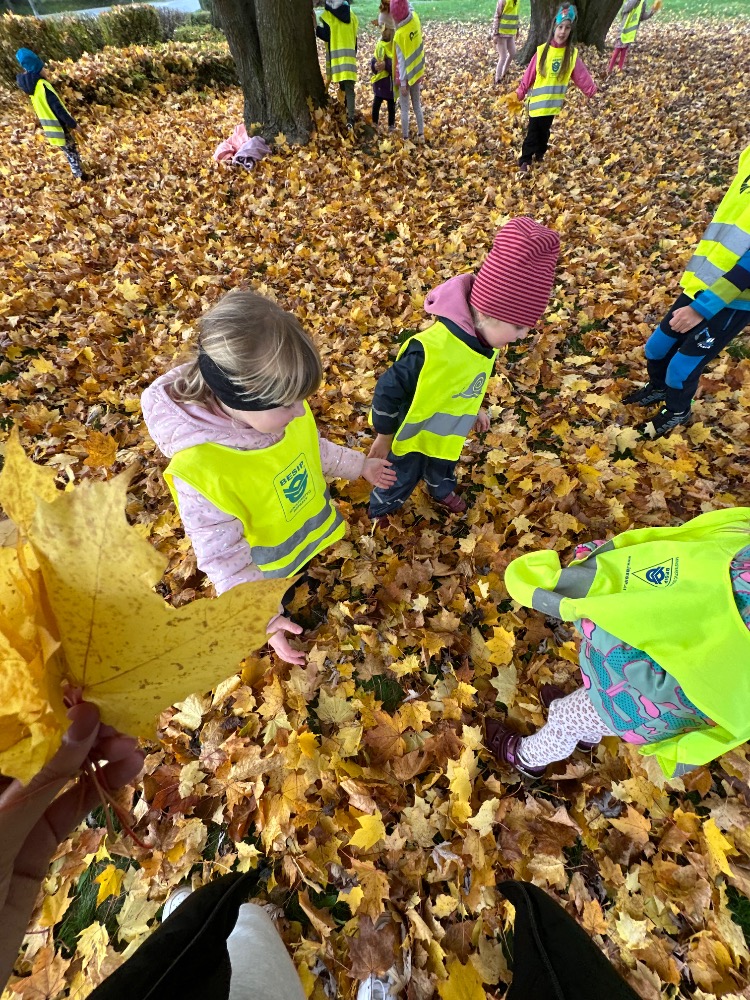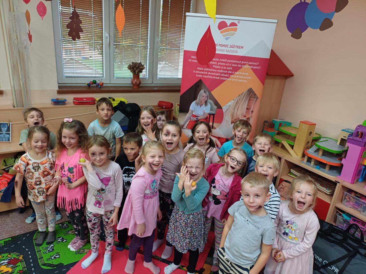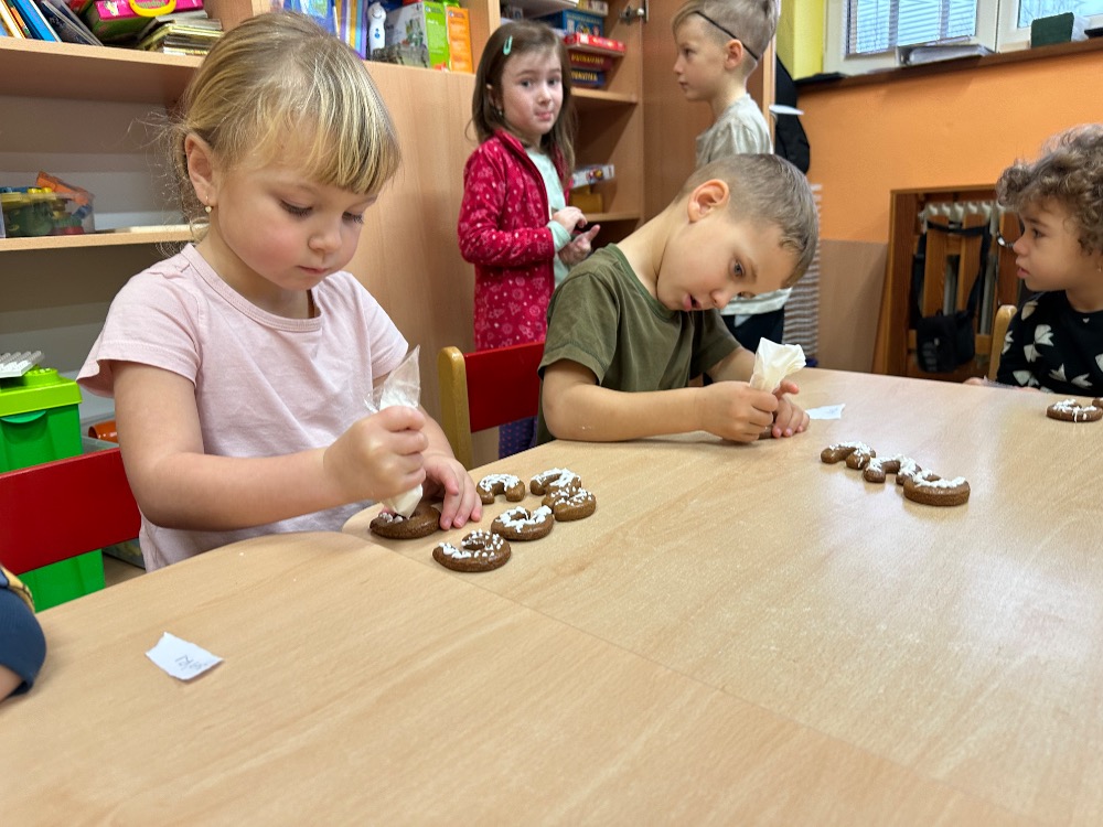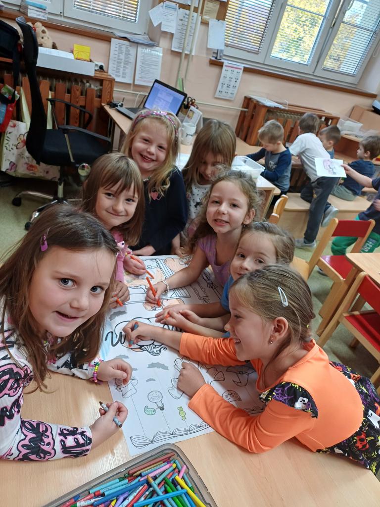 Podzimní hraní venku i vevnitř, společné dlabání dýně, divadlo ve školce - O Budulínkovi, pěstování ovoce a zeleniny, perníkové podkovy sv. Martina, obdivování prvního sněhu, vzdělávací program pro předškoláky První pomoc zážitkem, tvoření v Podzimní rodinné dílně.