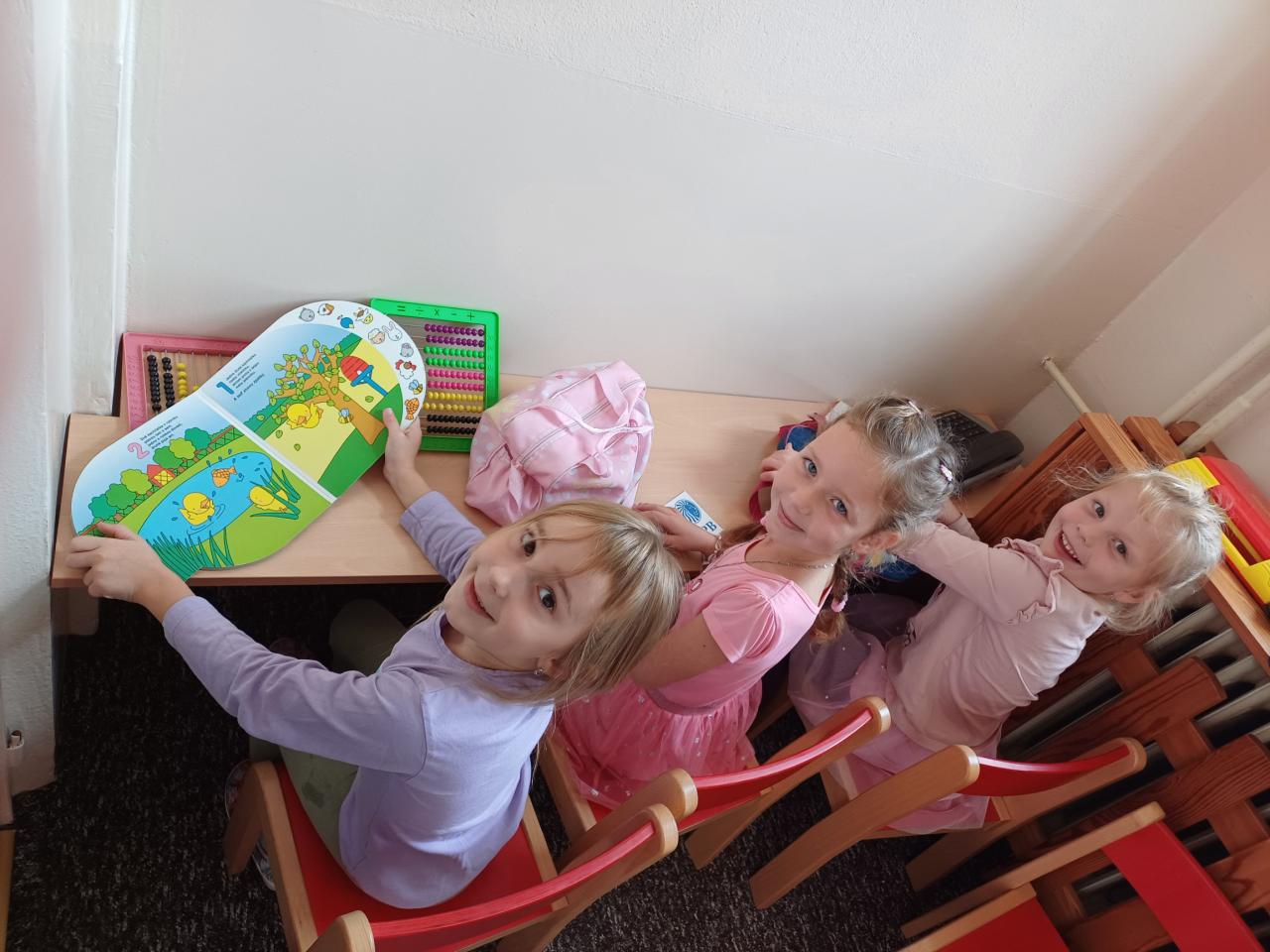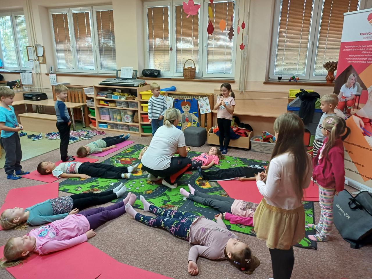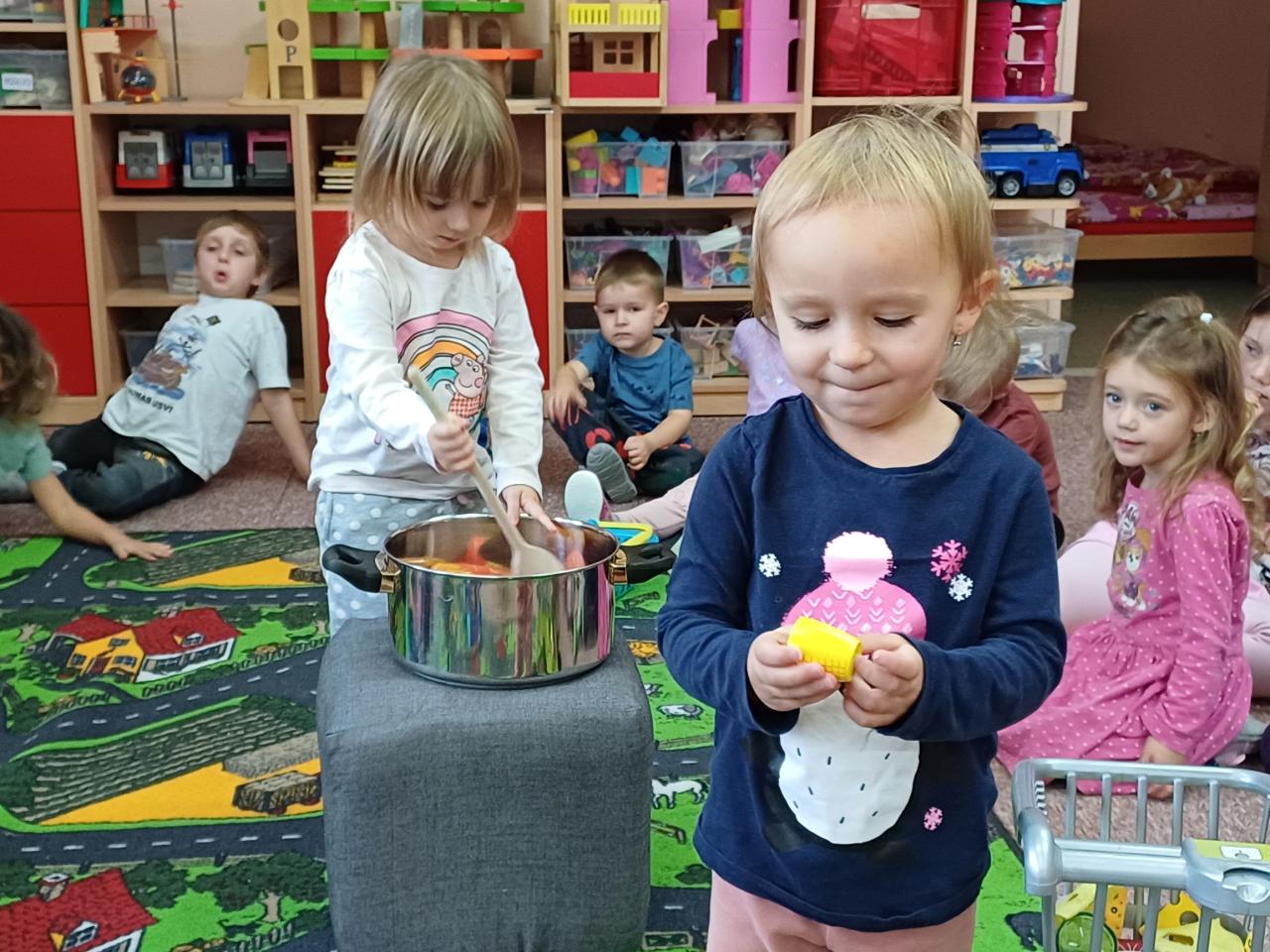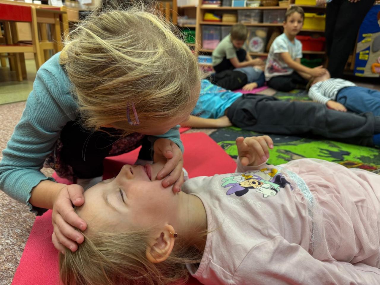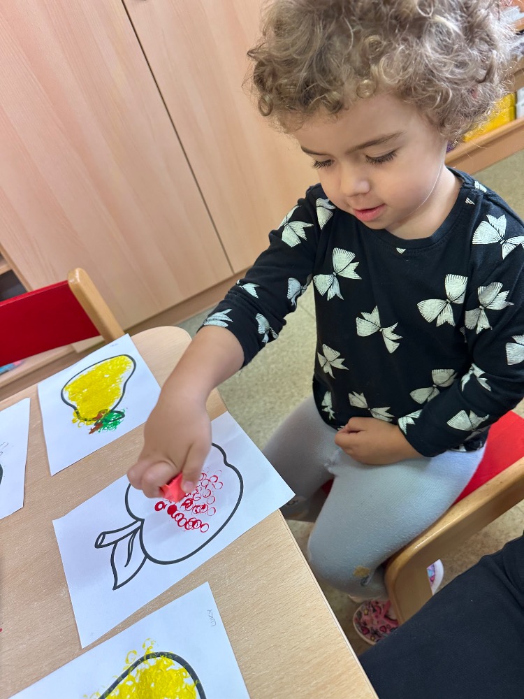 Podzimní hraní venku i vevnitř, společné dlabání dýně, divadlo ve školce - O Budulínkovi, pěstování ovoce a zeleniny, perníkové podkovy sv. Martina, obdivování prvního sněhu, vzdělávací program pro předškoláky První pomoc zážitkem, tvoření v Podzimní rodinné dílně.
