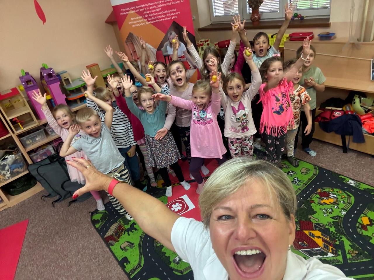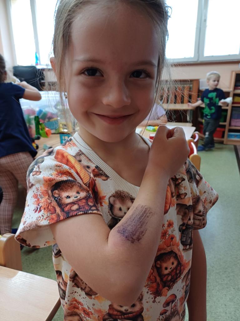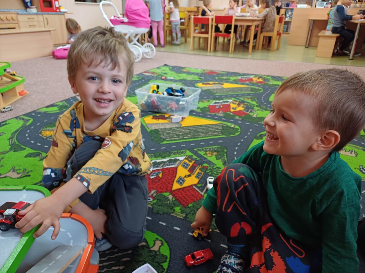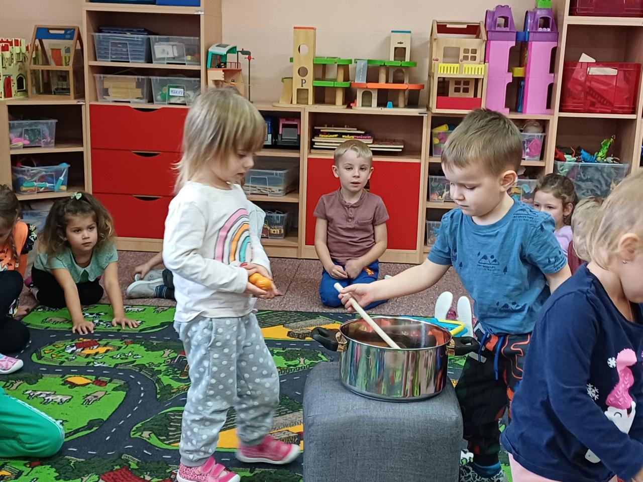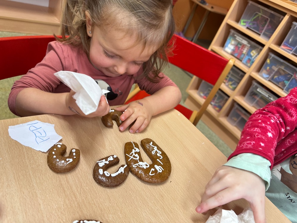 Podzimní hraní venku i vevnitř, společné dlabání dýně, divadlo ve školce - O Budulínkovi, pěstování ovoce a zeleniny, perníkové podkovy sv. Martina, obdivování prvního sněhu, vzdělávací program pro předškoláky První pomoc zážitkem, tvoření v Podzimní rodinné dílně.