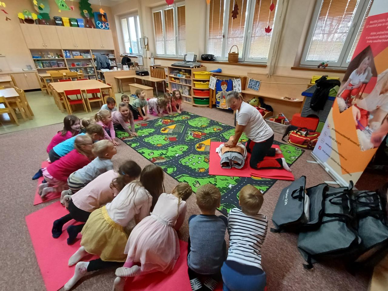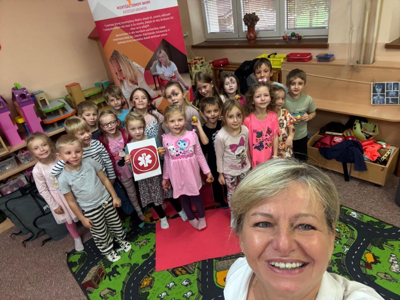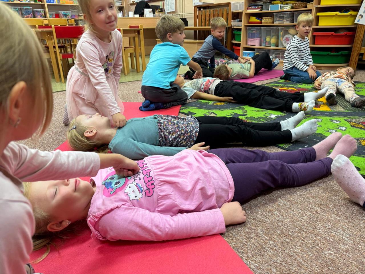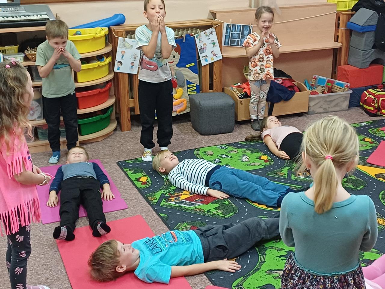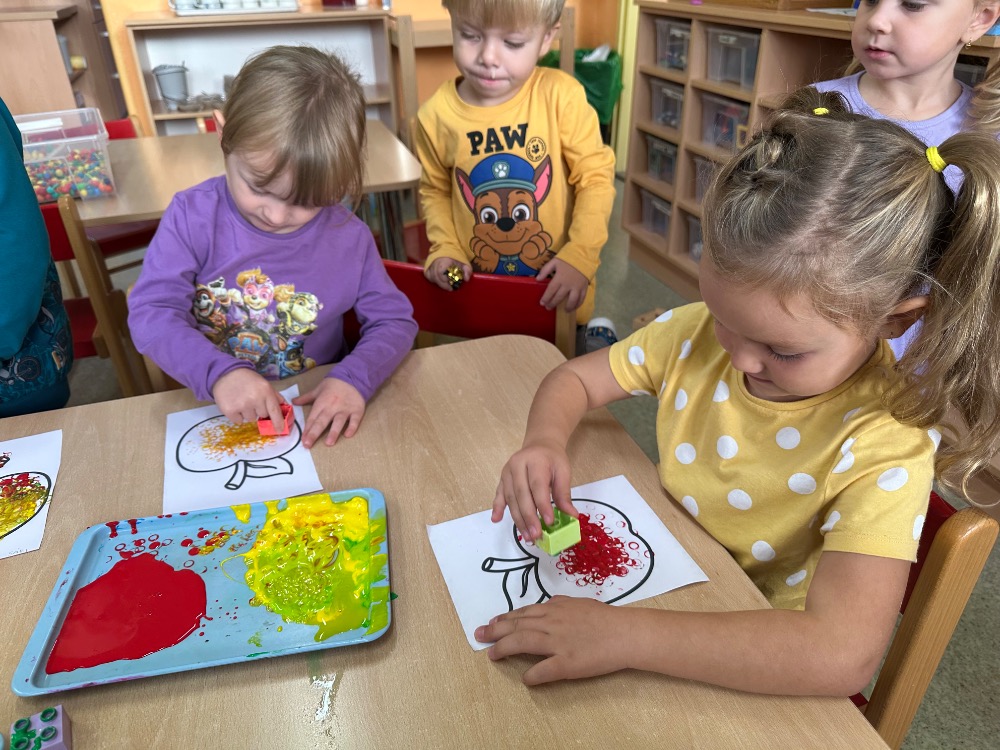 Podzimní hraní venku i vevnitř, společné dlabání dýně, divadlo ve školce - O Budulínkovi, pěstování ovoce a zeleniny, perníkové podkovy sv. Martina, obdivování prvního sněhu, vzdělávací program pro předškoláky První pomoc zážitkem, tvoření v Podzimní rodinné dílně.