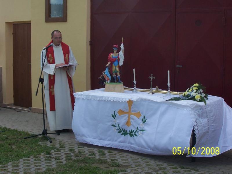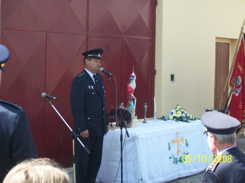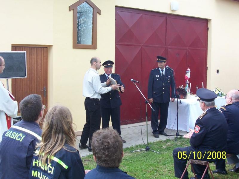 U hasičské zbrojnice promluvil ke shormážděným hasičům a občanům starosta SDH Mrákov ing. Josef Jírovec a poté proběhlo svěcení sochy hasičského patrona - sv. Floriana. Svěcení sochy bylo svěřeno mladému faráři, P. Robertu Bergmanovi, který působil v obci Mrákov jako jáhen a nyní je členem společné duchovní správy a koordinátorem pastorace mládeže v rokycanském vikariátu.