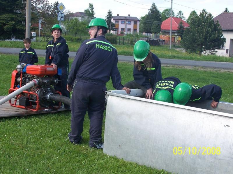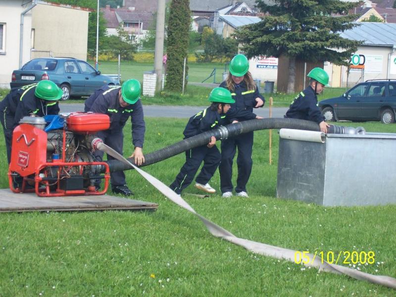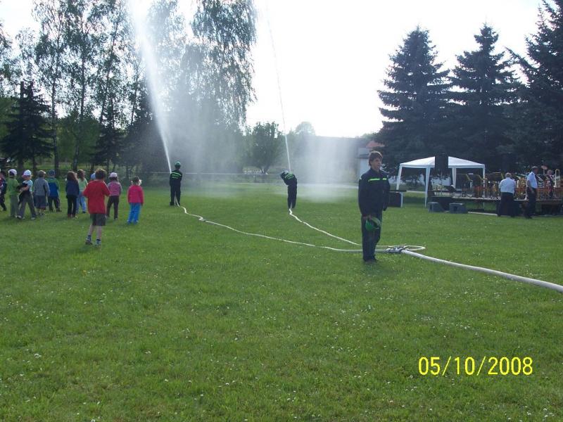 Průvod pak pokračoval až na prostranství u koupaliště, kde Horalka zaujala místo na pódiu a proslovu se ujal bývalý vedoucí mladých hasičů, dnes starosta Okresního sdružení hasičů Čech, Morava a Slezka, p. Jiří Petrželka. Následovala ukázka štafety a hasičského útoku mladých hasičů, které již léta vede p. Anna Jírovcová.