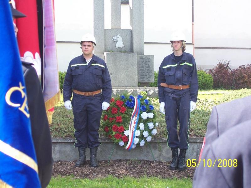 Poté se účastníci oslav vydali průvodem k památníku obětí válek u kostela, kde položili věnec a vzpomněli na ty, kteří zahynuli ve válce. Zde se ujal slova starosta obce Mrákov Josef Janeček, který uctil památku obětí války a promluvil k hasičům, kterým poděkoval za jejich práci.