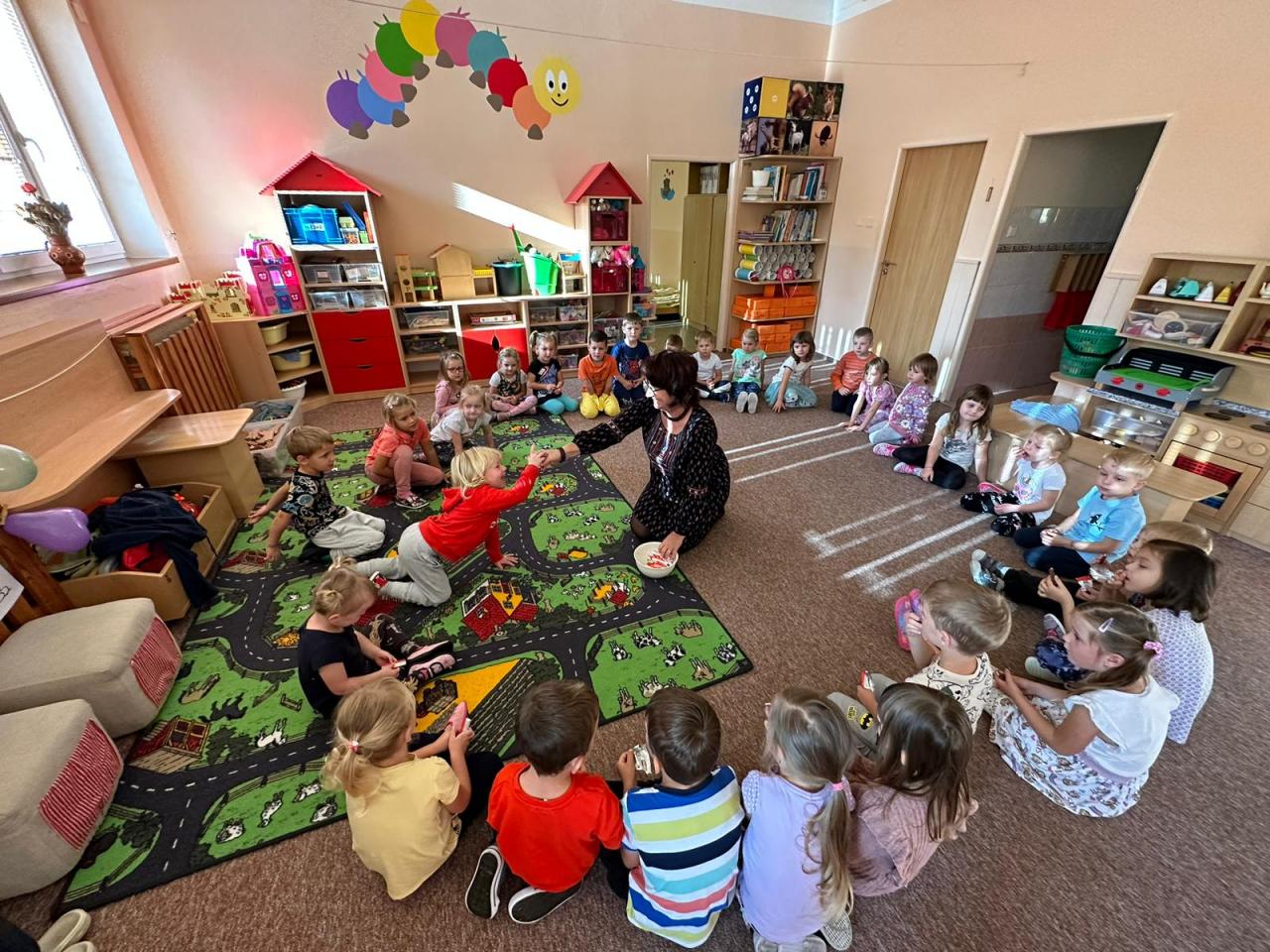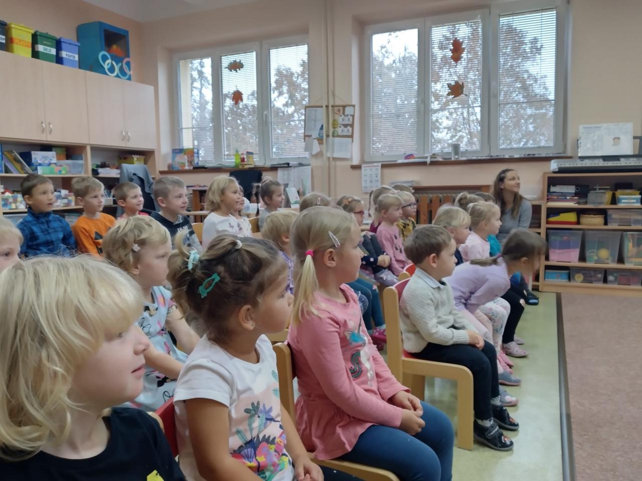 Užíváme si podzim na zahradě, cvičíme ve škole, hrajeme si s kaštany, Program zubní prevence, zkoumáme lidské tělo, houbičkové pečení, dlabeme dýně, hrajeme si se světýlky, přitloukáme podkovy koníkovi sv. Martina, sledujeme divadlo O velikém drakovi...