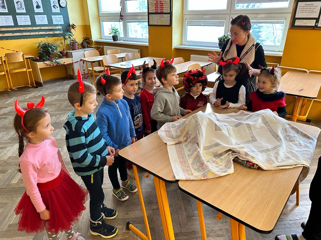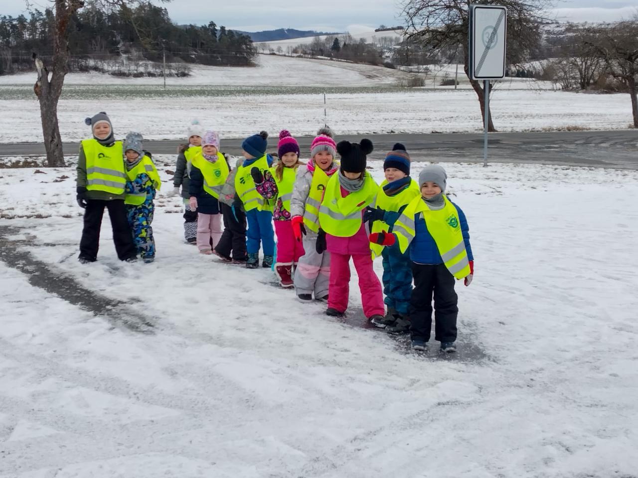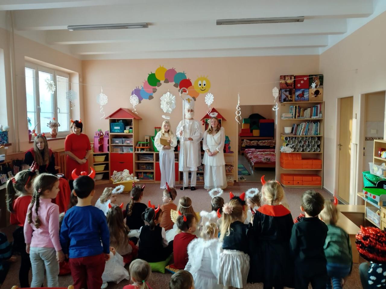Návštěva kamarádů z 1. třídy ZŠ, nadílka od Mikuláše, čertí škola v ZŠ Mrákov, Ježíškova nadílka, Vánoční sedánka pro rodiče a prarodiče, divadlo Letadlo ve školce, ledové pokusy, hrajeme si na sněhu, masopustní vystoupení dětí ze 4. třídy ZŠ, masopustní karneval.